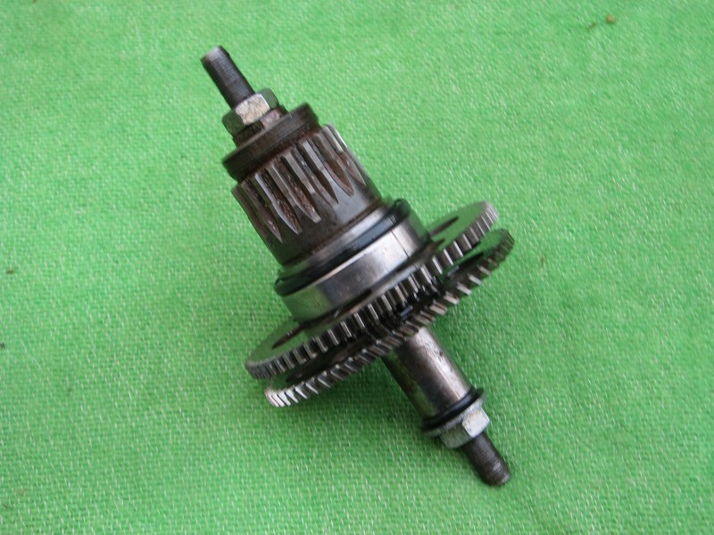 Kompletna przekładnia napędu z kołem na 54 lub 67 zębów, 100% sprawna, z ośką konusem, wiankami, pieskami - jak na zdjęciu. Używana.