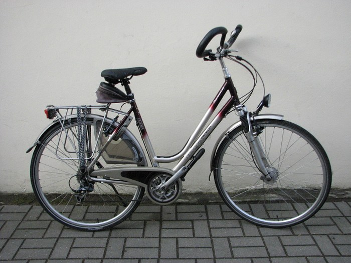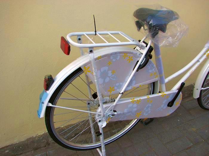 Wyposażenie dodatkowe: błotniki, bagażnik, stopka, dzwonek, pompka, licznik, sakwy.